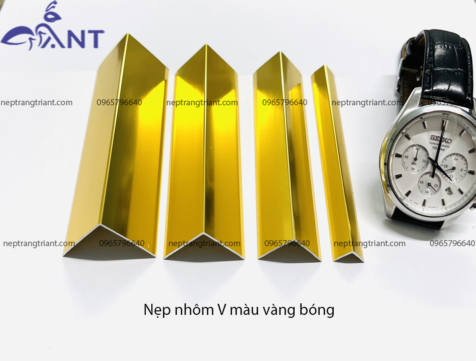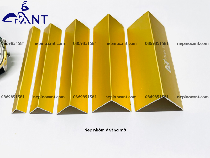 Nẹp Nhôm Chữ V hay ( Thanh Nẹp V Nhôm ) là sản phẩm nẹp hợp kim nhôm dạng hình chữ V hai cạnh đều nhau. Sản phẩm được sử dụng làm nẹp trang trí cạnh góc vuông 90 độ. Được làm từ hợp kim nhôm 6063 si mạ ANODE nên có độ bền cao, khả năng chống ăn mòn tốt, đa dạng màu sắc và kích thước. Nên sản phẩm được các nhà thầu thi công nội thất sử dụng để trang trí, tạo điểm nhấn cho công trình. Sản phẩm được công ty ANT cung cấp với những thông tin như sau: